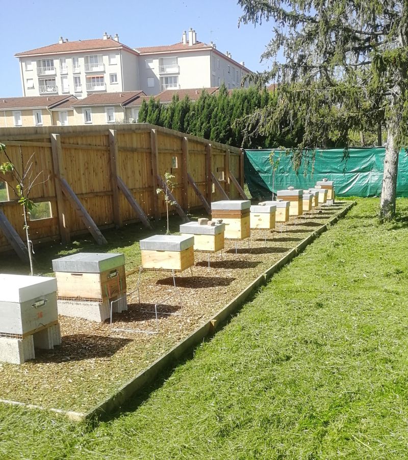 Le rucher école dispose d’une quinzaine de ruches pour ses élèves et ses animations. Les ruches du rucher école sont de modèle Dadant 10 cadres. Les abeilles ont été choisies pour leur douceur, elles sont de race Carnica. Le rucher école dispose également de 2 balances connectées afin de suivre les miellées à distance (modèles ochios et be2bee).